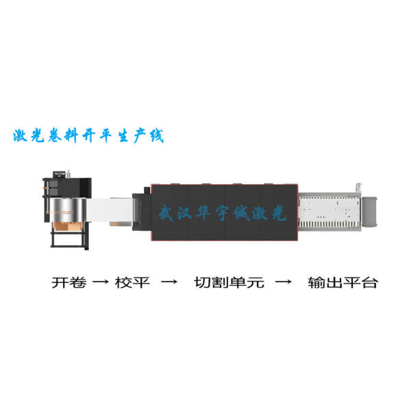 整套采用激光切割技術(shù)的開(kāi)卷落料生產(chǎn)設(shè)備,由上料臺(tái)車(chē)、開(kāi)卷機(jī)、校平機(jī)、緩沖活套、伺服送料機(jī)、激光切割裝置、切割平臺(tái)、廢料處理系統(tǒng)、液壓氣動(dòng)系統(tǒng)及電氣控制系統(tǒng)組成。